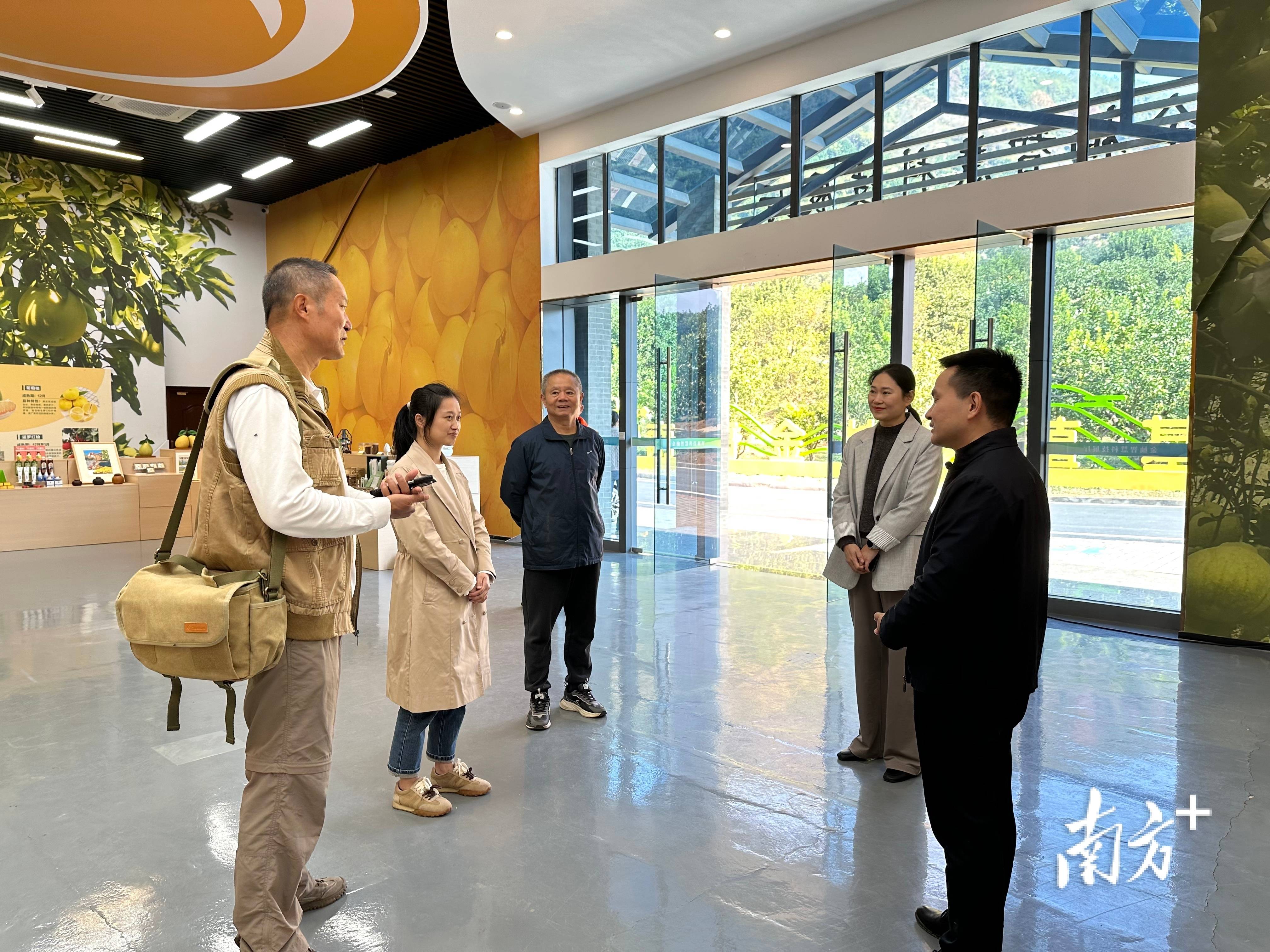 在梅县区雁洋镇南福村,调研团队在三级驿站联动支持下,深入金柚种植基地与文旅项目现场,通过与村书记及乡亲代表访谈,挖掘出“智慧农业专家助力柚果品质提升、乡亲返乡投资农文旅融合项目”的鲜活故事,展现了外部人才与本土力量共同推动乡村振兴的生动实践。